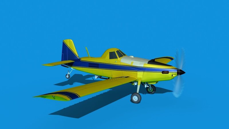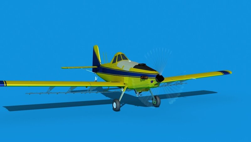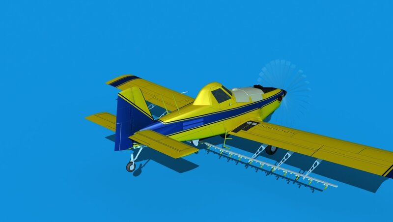 The Air Tractor AT-500 is a agricultural chemical sprayer developed by the Air Tractor Inc. It was developed in the late 1980s first flying in 1986. They are designed with a central hopper for chemicals and powders for spraying. It has a low wing monoplane configuration and is also a tail dragger. The wingspan is 50’. These have been the best selling agricultural spraying aircraft available. The model was built near to scale in real units and built based on drawings, photos, and other documents. This model has a moderately detailed cockpit and the following animateable features; ailerons, elevators, rudder, and wheels. These models render very well and look very realistic using good animation, lighting and rendering technique. It can be used in an animated or static position within a scene, animation or animated video, or possibly programming for a flight simulation application. This model was not designed for 3d printing, these are to be used as digital files only. If you purchase one for digital printing we do not guarantee that your print will be successful. Exporting of models is limited but good for several software applications. This model is fully textured with all materials UVW mapped and applied. Most materials are planar mapped and major materials include texturing. All textures and materials are included as shown. Objects are logically named for ease of scene management.No cleaning up necessary, just drop your models into the scene and start rendering.No special plug-ins are needed to open scene. In most cases the liveries are based on actual service liveries or paint schemes. Many of the units, airlines or countries who flew the plane are represented here. Dreamscape Studios is a US 3d modeling firm specializing in building high definition, accurate, and detailed 3D models of commercial, civilian, and military airplanes, ships, buildings and other subjects.Dreamscape 3d models are built in ultra-low to ultra-high polygon count, (most often) near to scale and include a good amount of detail based on the resolution target. If you have a question, error or problem with the model, let us know and we will do our best to provide or get a solution for you. Be advised our models are not designed for 3d printing unless they are advertised for that purpose.