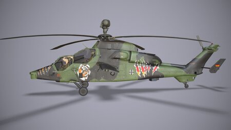 The Eurocopter EC-665 Tiger is a four-blade, twin-engine attack helicopter