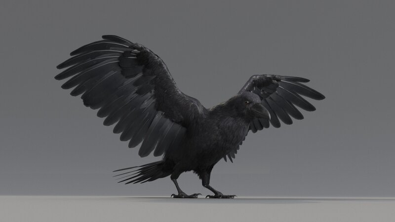 Let us introduce to you our Raven model with the animations. Originally modeled in 3ds max, and using bone tools to create custom rigging, it already has basic animations.