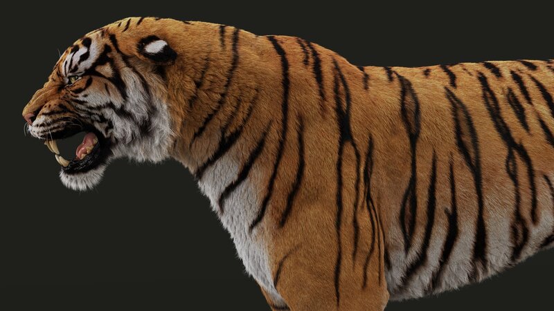 High Detailed Photorealistic Bengal Tiger; UVunwrapped and smoothable, made with Maya. Shave and a haircut for hair.