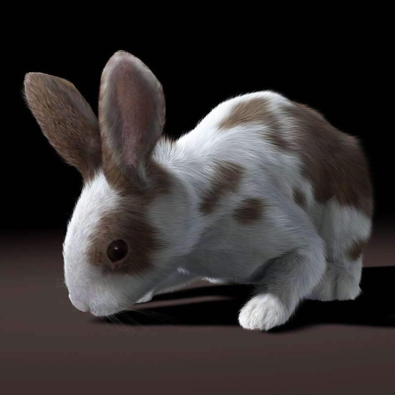 High Detailed Realistic Rabbit (spotted variant) ;FULLY RIGGED and ANIMATED, UV mapped and smoothable, made with Maya - Shave and A Haircut for fur (see the bottom of the page for further information).