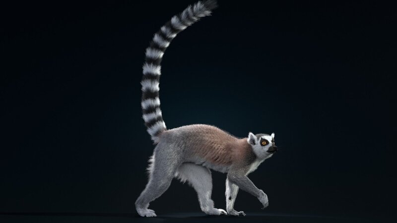 This is a realistic lemur catta model, with textures, animation, rigging, fur, multiple 4K maps in UDIM format to add more details. Skin maps are made separately to enhance realism. The model is completely made with Blender and Cycles renderer at real-world scale.