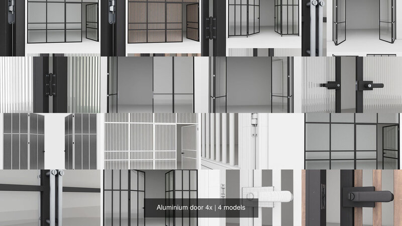 Aluminium door 4x Render : Vray, Corona Archives included: materials (mat) Corona, Vray, textures, obj, model 3ds Max 2014 Vray(3.4) and Corona(4)