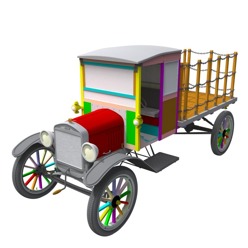This high resolution 3,263,314 poly CAD model was created in SolidWorks™ from research, field measurements and photographs. It is full-size (1:1) and accurately scaled, with most parts individually modeled. The modeling quality allows for extreme close-ups and rendering. It is ideally suited for hero and foreground shots within early 20th Century period sets and CG’s. There is no motor, only the “basic block” and oil pan that shows under the chassis.