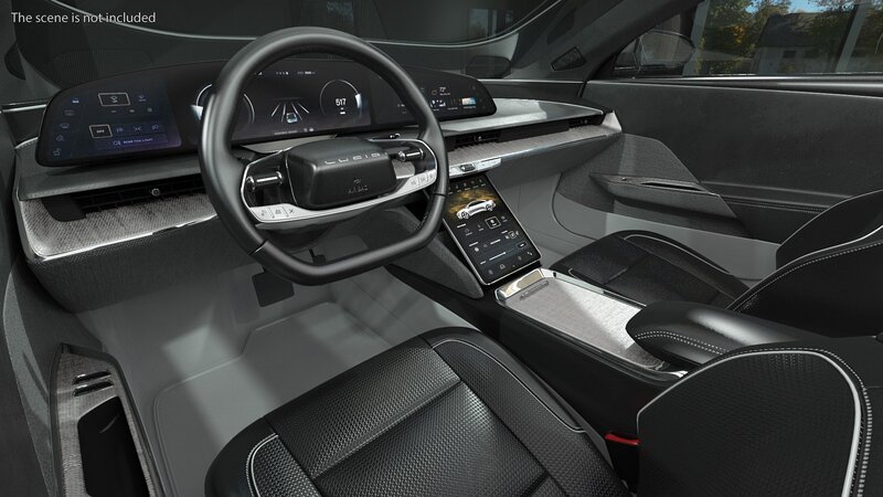 Electric Luxury Sedan Lucid Air Rigged is fully rigged and is ready to be animated. You can easily position it the way you need or animate it the way your project requires using helpers in 3D Studio Max. See the turntable to get an idea of how rigging works. Electric Luxury Sedan Lucid Air Rigged has a detailed interior. Doors can be opened. The pose with open doors on the render images is an example and can be easily recreated using rig, it is not initially included into the product.
