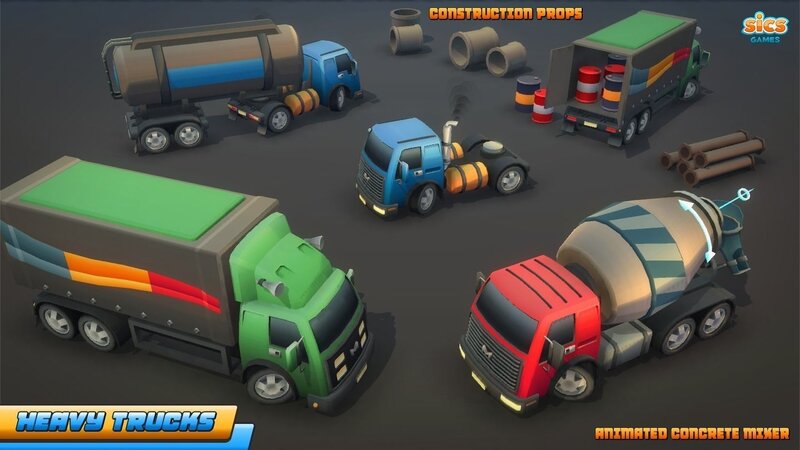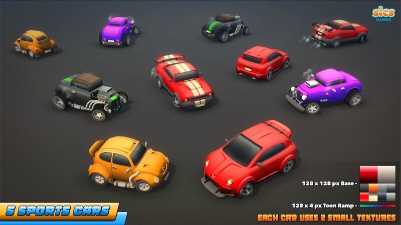 A complete package, containing 33 stylized car models, perfect for your project. Ideal for racing simulators, city management games, and any driving related project. For performance reasons and with mobile devices in mind, the models use a tiny 128*128 color texture and a 128*4 toon ramp. All models have a low poly count, ranging from 100 triangles for the simplest models, to 5K triangles for the more complex ones. Moving parts are separated so they can be animated.