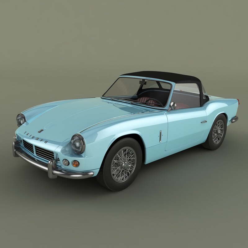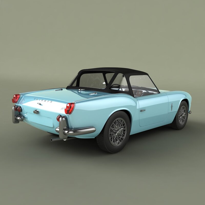 High detailed, correctly scaled model of Triumph Spitfire Mk 2 1966. Originally created with 3ds Max 8. Rendered with V-Ray , files with standard materials are included. Unit system is set to metric units. Model is built to real-world scale.