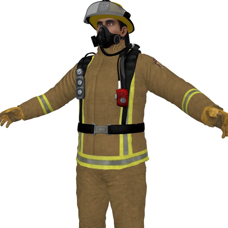 Fireman, Equipment and Helmet.