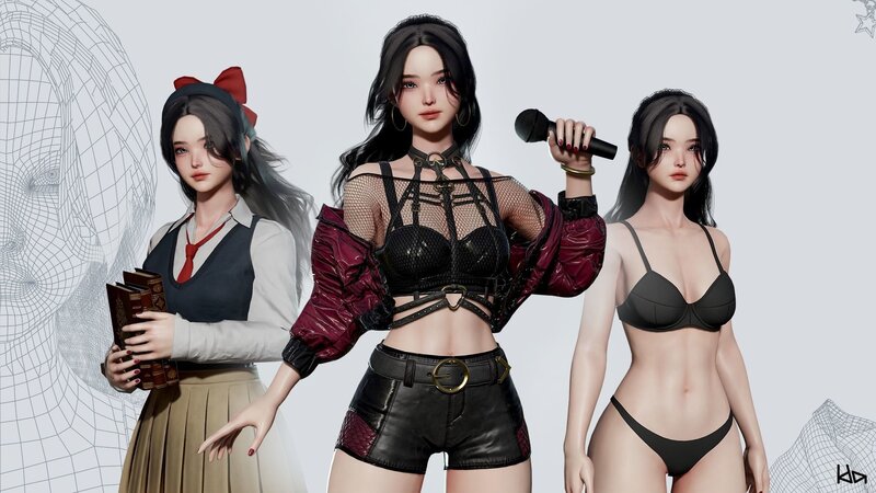 This model has 3 outfits: Performance, Casual and Lingerie. It also has nude version with uncensored textures.