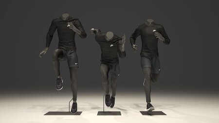 3d model of the Mannequins in clothes. 3 different poses. Seven elements of clothing for each of the poses: hoodie, jacket, shorts, t-shirt, long sleeve, tights, sneakers. Several color options All clothing was created in MARVELOUS DESIGNER Easy to change color and pattern The file was created in 3d max 2014 Archive includes files with extension .max .fbx .obj. Vray materials and bitmap images are also inside. The scene for 3d max includes 3 mannequins in all clothes and separately all the colors of clothes for easy and quick change (Look at the last preview) all scene - 9 110 000 polys, 4 600 000 verts one mannequin with clothes ~ 1 100 000 polys, 600 000 verts more preview in the description of pack 1