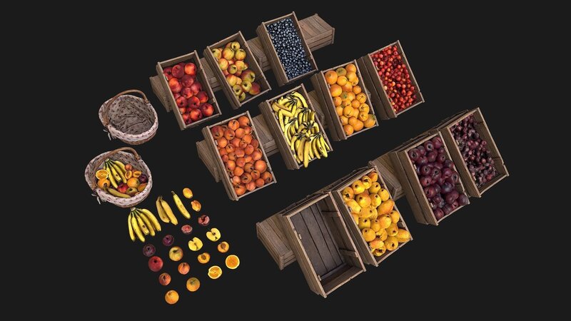 Game ready models.Stylized and detailed Vegetables and Fruits Bazaar Set fully textured, sculpted and rendered with Physical based rendering (PBR) - Shown images have been rendered in Marmoset Toolbag .The models contains lods, detailed information on the images. The set contains 74 models. High Quality textures (PBR).