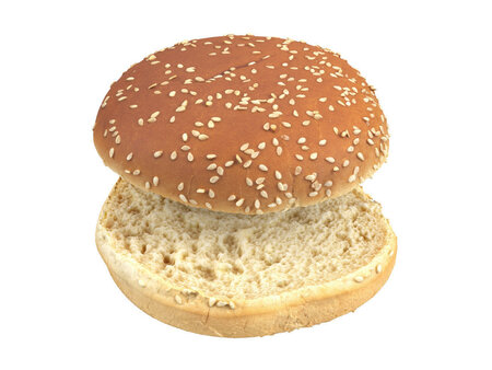 Highly detailed, photorealistic, 3d scanned model of a burger bun. 8k textures maps, optimized topology and uv unwrapped.