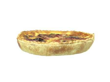 Highly detailed, photorealistic, 3d scanned model of a tomato zucchini quiche. 8k textures maps, optimized topology and uv unwrapped.