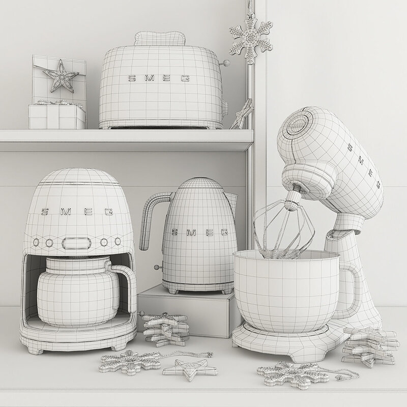 » Smeg Set kitchen appliances with christmas decorations 3D model
