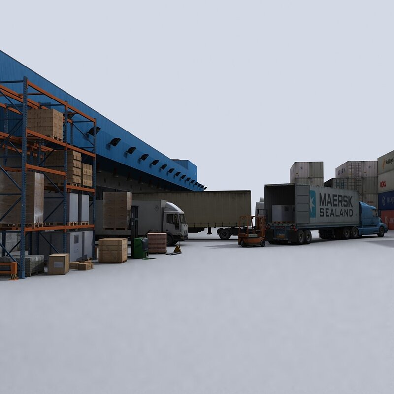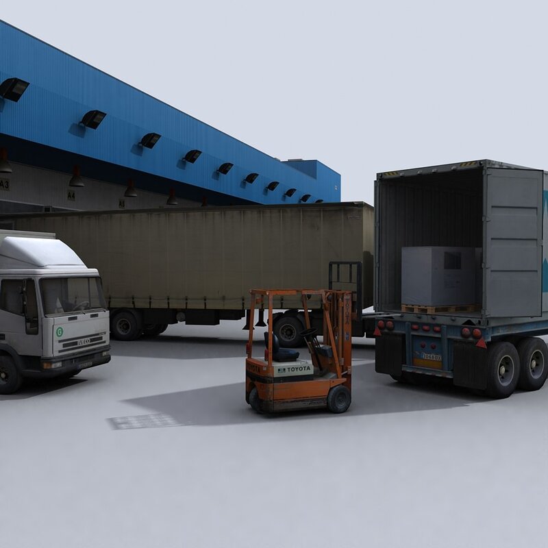 This is a collection of 12 realtime models of vehicles and machines related to the logistics & transportation.