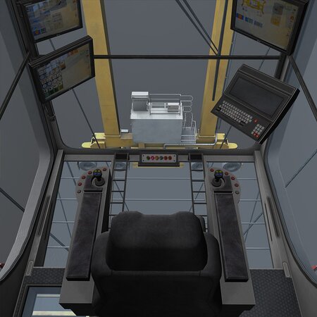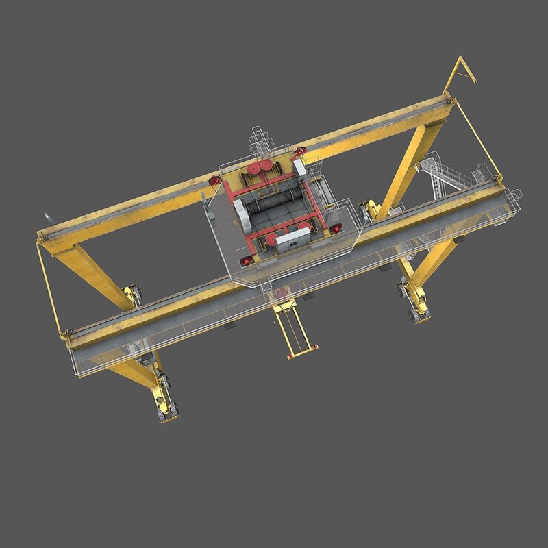 Real time 3D model of rubber tyred gantry crane (RTG crane) with first person view cabin and detailed spreader.