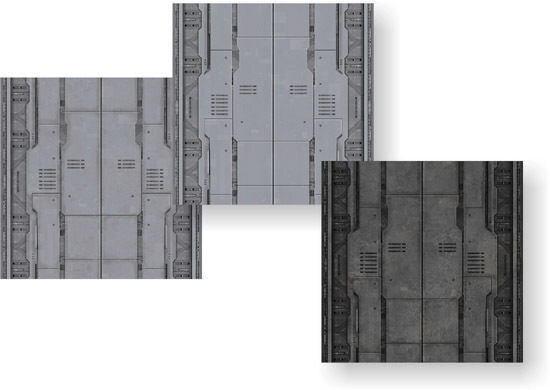 Each texture is provided in three versions: 1.) new and clean material 2.) rusty surface 3.) used and slightly damaged