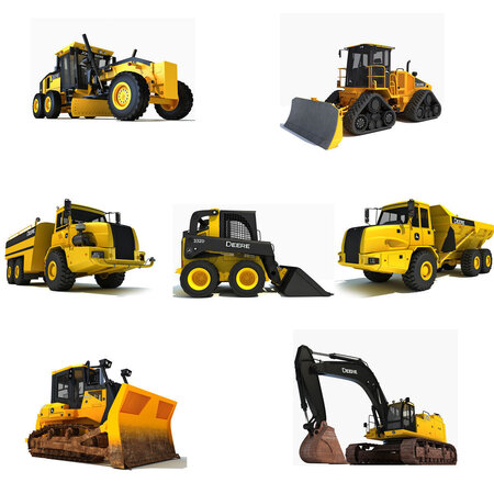 A collection of 7 quality 3d models of John Deere public works vehicles.