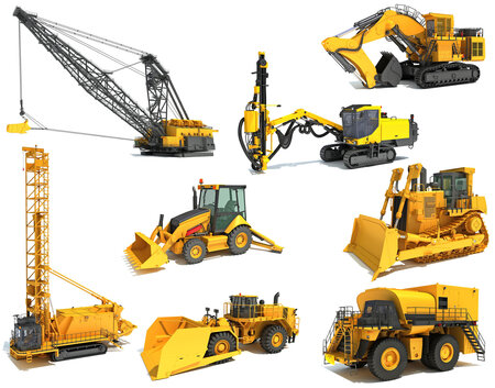 High detailed 8 mining machinery equipment 3d models.