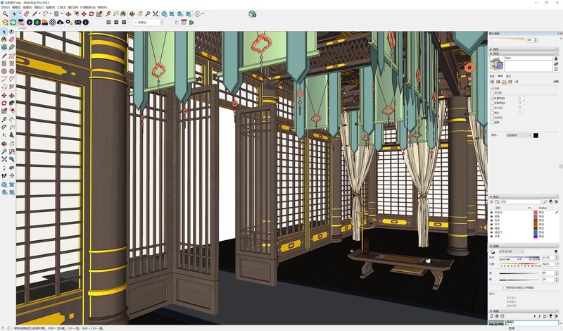 An ancient style vestibule dedicated to business affairs File composition:. skp2014, 2022, including ens presets and blender version 3.5 Outline within su: Dynamic components (door opening and closing): ENS internal rendering: Quick method to achieve sample rendering effect: