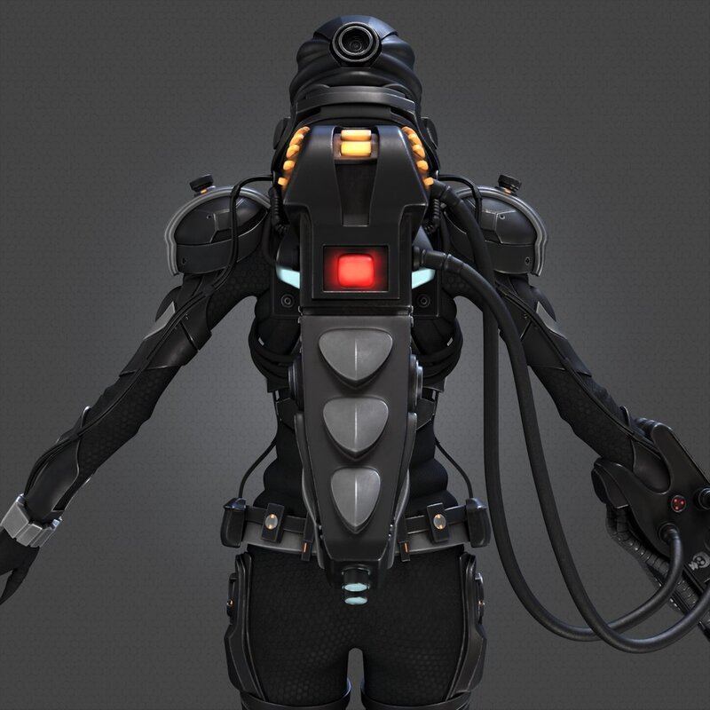 High quality 3D model of a female cyborg, ready for close-up and HD renders. PBR textures. File in the Marmoset Toolbag 2 available.
