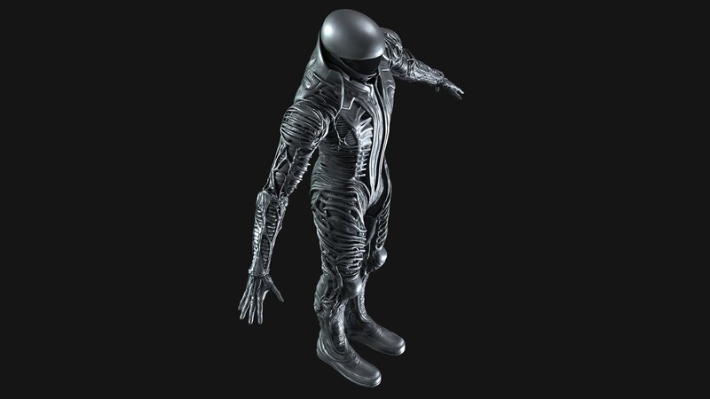 A biomechanical suit that carries lines of H.R. Giger concepts. .