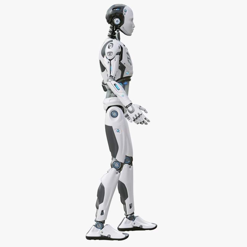 This is a finely detailed 3d model of a futuristic sci-fi male robot.