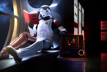 A rigged stormtrooper - Design from the original films. Includes gun, droid and set. Rigged