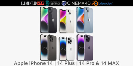 Realistic (copy) 3d model Apple iPhone 14 and 14 Plus and 14 Pro and 14 Pro MAX.